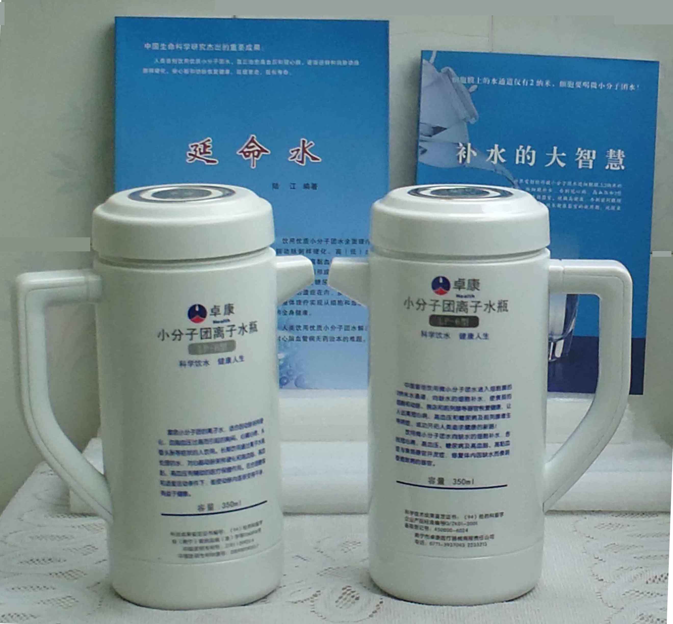 本品大量用戶的使用效果表明,能治愈冠心病、腦動(dòng)脈硬化、原發(fā)性高(低)血壓、高血脂、高粘血癥、高血尿酸癥(痛風(fēng))和2型糖尿病、衰弱器官并發(fā)癥(前列腺增生、腎衰與尿毒癥)及中風(fēng)后遺癥等療效好。產(chǎn)品配信譽(yù)卡。使用壽命30年,不換芯,易清洗。團(tuán)購優(yōu)惠。從郵局匯款,匯費(fèi)1%,地址按本頁下方地址、聯(lián)系人寫。從銀行匯款,請點(diǎn)擊[聯(lián)系匯款]欄,從工商銀行匯款,建設(shè)銀行、農(nóng)業(yè)銀行匯款,均免收匯費(fèi),匯款后20--30分鐘內(nèi)發(fā)短信,可用微信轉(zhuǎn)帳,均免匯費(fèi),微信號即手機(jī)號13768308380。匯款后,告知你的姓名和地址,我公司聯(lián)系人手機(jī)號是:13768308380。卓康牌離子水瓶為我公司獨(dú)家生產(chǎn),郵購產(chǎn)品配《補(bǔ)水的大智慧》彩印書一本,另配四季出版社出版的新書《補(bǔ)水的大智慧》一本,并配光盤一張(含央視主持人釆訪陸江的對話視頻)。目前市場和"淘寶網(wǎng)"上有人兜售假冒的偽品,望讀者審察辯別真?zhèn)?,造假者剽竊假冒本公司的各種認(rèn)證、獲獎(jiǎng)獎(jiǎng)項(xiàng)、專利號和外包裝盒上的中英文字,包括科技成果的鑒定意見等,請讀者注意防偽。如何識別假貨?已經(jīng)買了假貨怎么辦?(請點(diǎn)擊[打假掠影][打假掠影])。